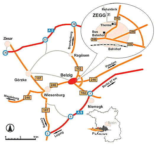 Von Berlin: A9 Richtung Leipzig, Abfahrt Niemegk/Bad Belzig, Richtung Bad Belzig. Von Leipzig: A9 Richtung Berlin, Abfahrt Niemegk/Bad Belzig, Richtung Bad Belzig.